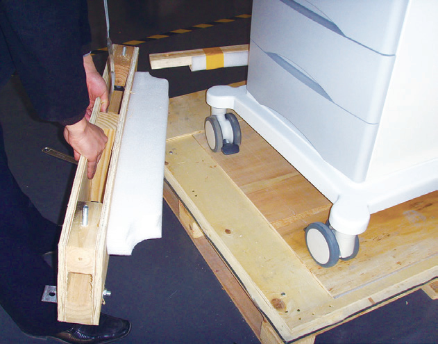 本方案著重解決帶滾輪醫(yī)療設(shè)備的緩沖設(shè)計(jì)以及設(shè)備固定、設(shè)備的防水包裝、設(shè)備快速包裝和配件的組合包裝,利用充氣墊對(duì)異形產(chǎn)品的包裝等一系列難題。